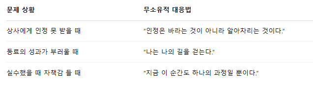 - 성과를 내기 위한 노력은 하되, 결과에 집착하지 않는다.